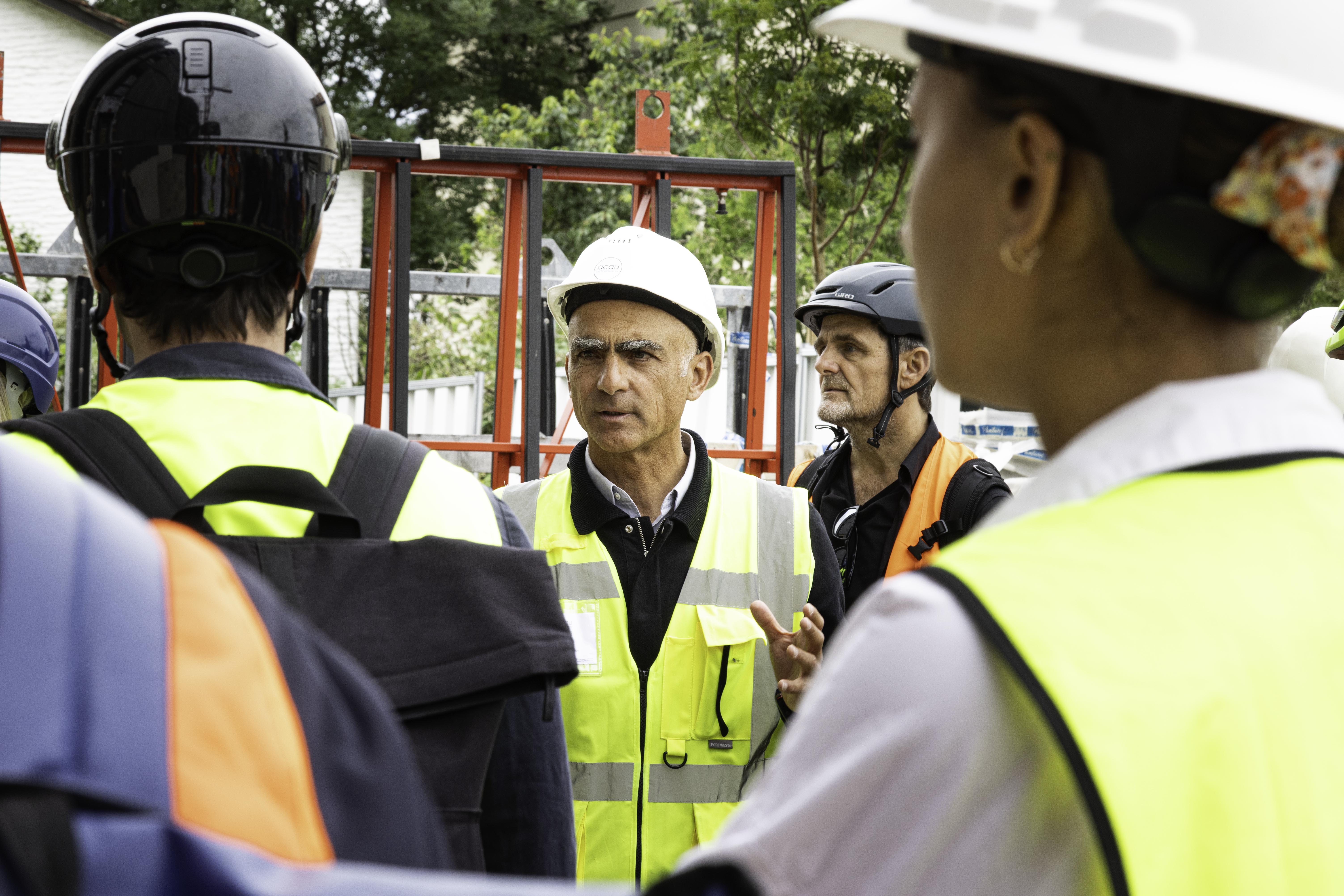 La présentation est orientée sur les bâtiments de logement en cours de construction. La visite du chantier illustre la mise œuvre d’une structure bois.