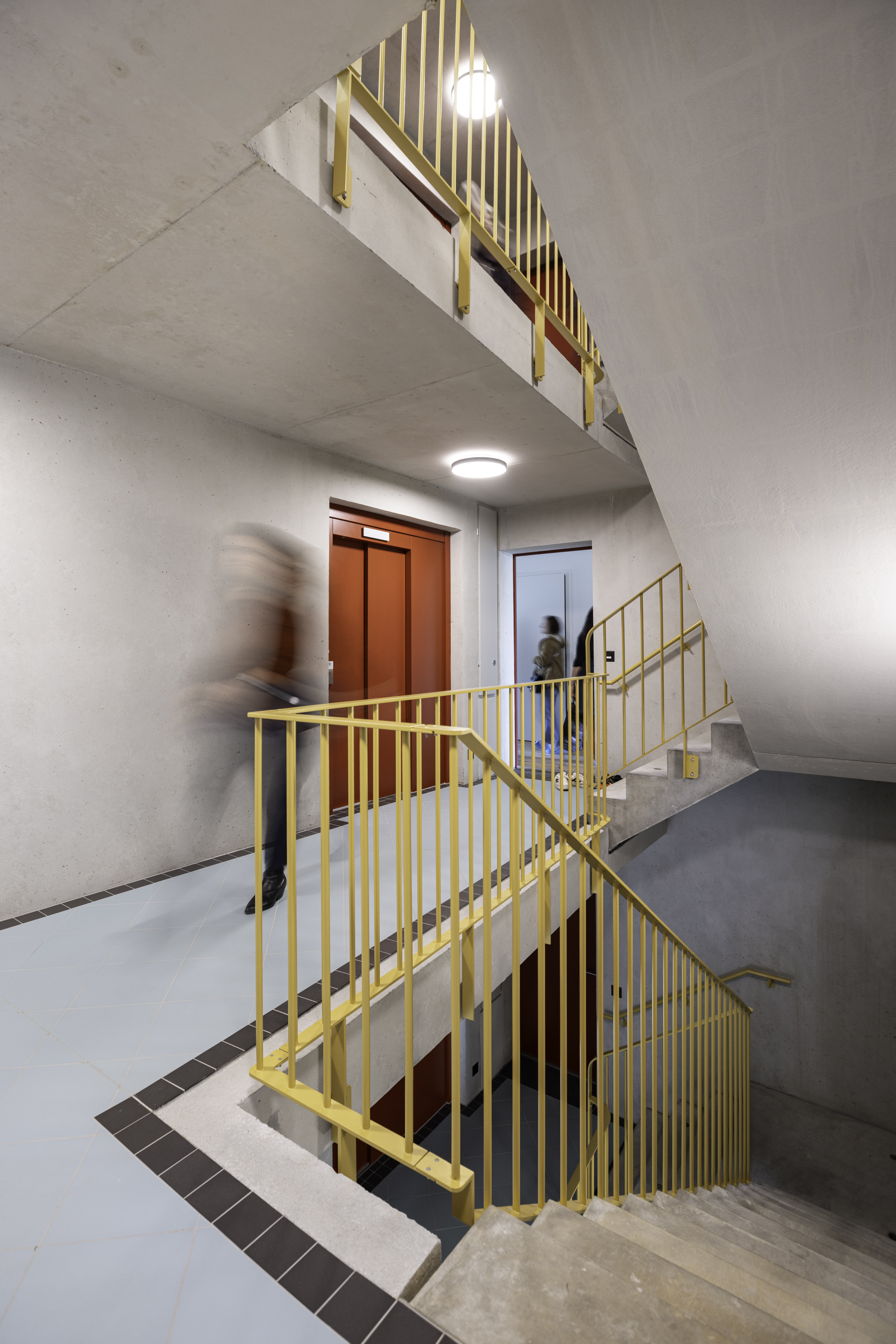 Les typologies ont été conçues pour favoriser les vues dégagées et la fluidité des circulations, et pour offrir un sentiment de générosité spatiale. Plusieurs pièces sont reliées par les balcons qui s’élargissent dans le prolongement des cuisines et des séjours pour devenir de véritables surfaces habitables supplémentaires. A chaque étage, des chambres semi-indépendantes peuvent être liées à l’un ou l’autre des appartements, ou devenir des pièces multifonctionnelles, semi-indépendantes directement accessibles depuis la cage d’escalier.
