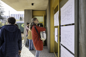 La qualité des aménagements extérieurs participe à la qualité de vie de l’ensemble. Ils accompagnent les habitants jusqu’à l’entrée de leur immeuble à travers différents seuils et filtres qui marquent subtilement le passage de l’espace public à l’espace privé. Les rez-de-chaussée, largement ouverts et traversants, participent à la vie du quartier. Située le long du chemin du Croissant, la salle commune s’affirme comme un lieu d’animation et de rencontre, renforçant le lien entre l’immeuble et son environnement urbain.