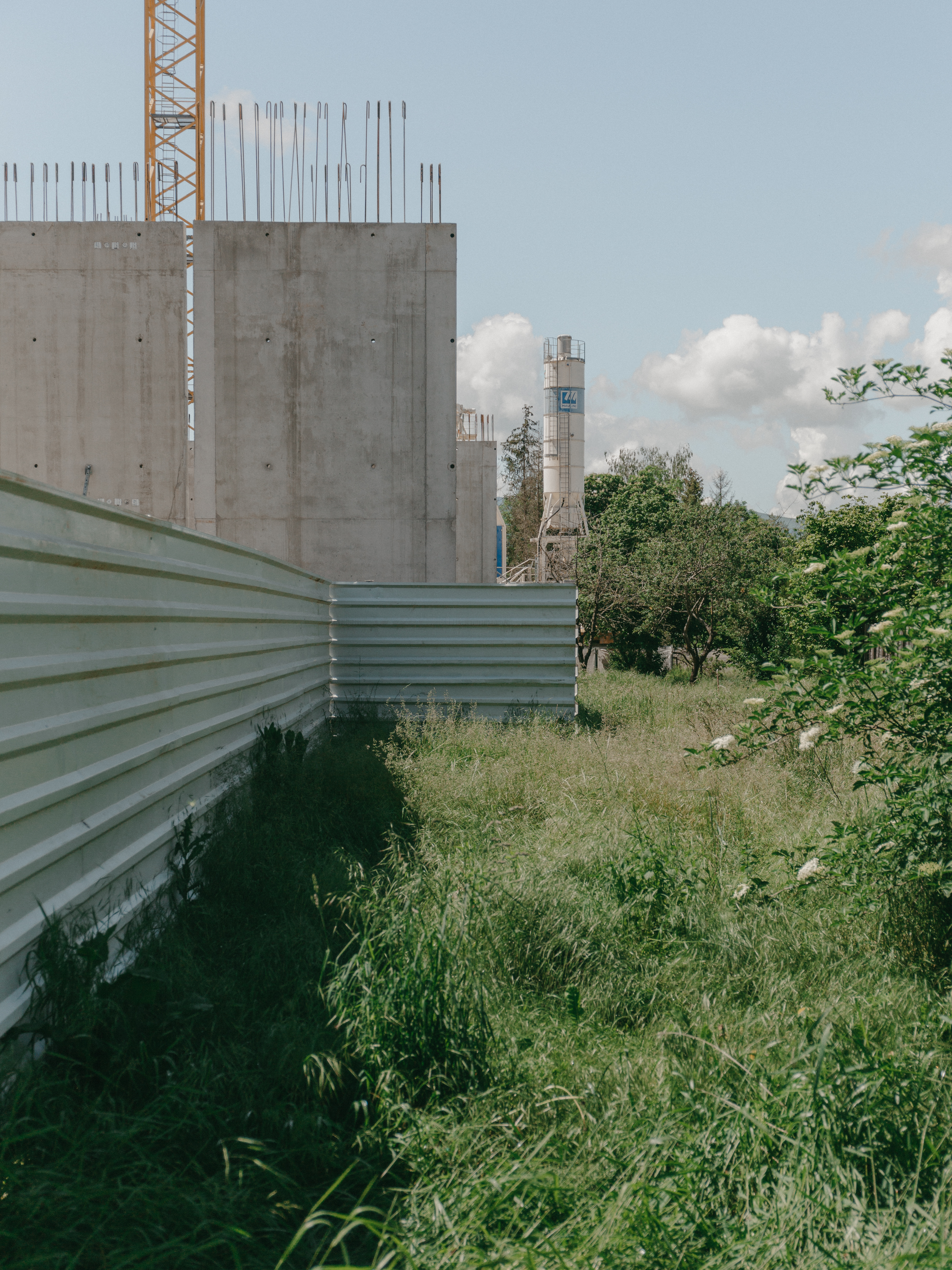 Trois volumétries sont proposées ; la première, située au Nord de la parcelle est linéaire, contigüe et entrecoupée en trois parties par des murs de refend en maçonnerie. La seconde, située au Sud de la parcelle est compacte et fractionnée en deux volumes qui glissent l’un sur l’autre. Enfin, la dernière volumétrie, située au centre de la parcelle, présente une forme solitaire et abrite des activités communales publiques.