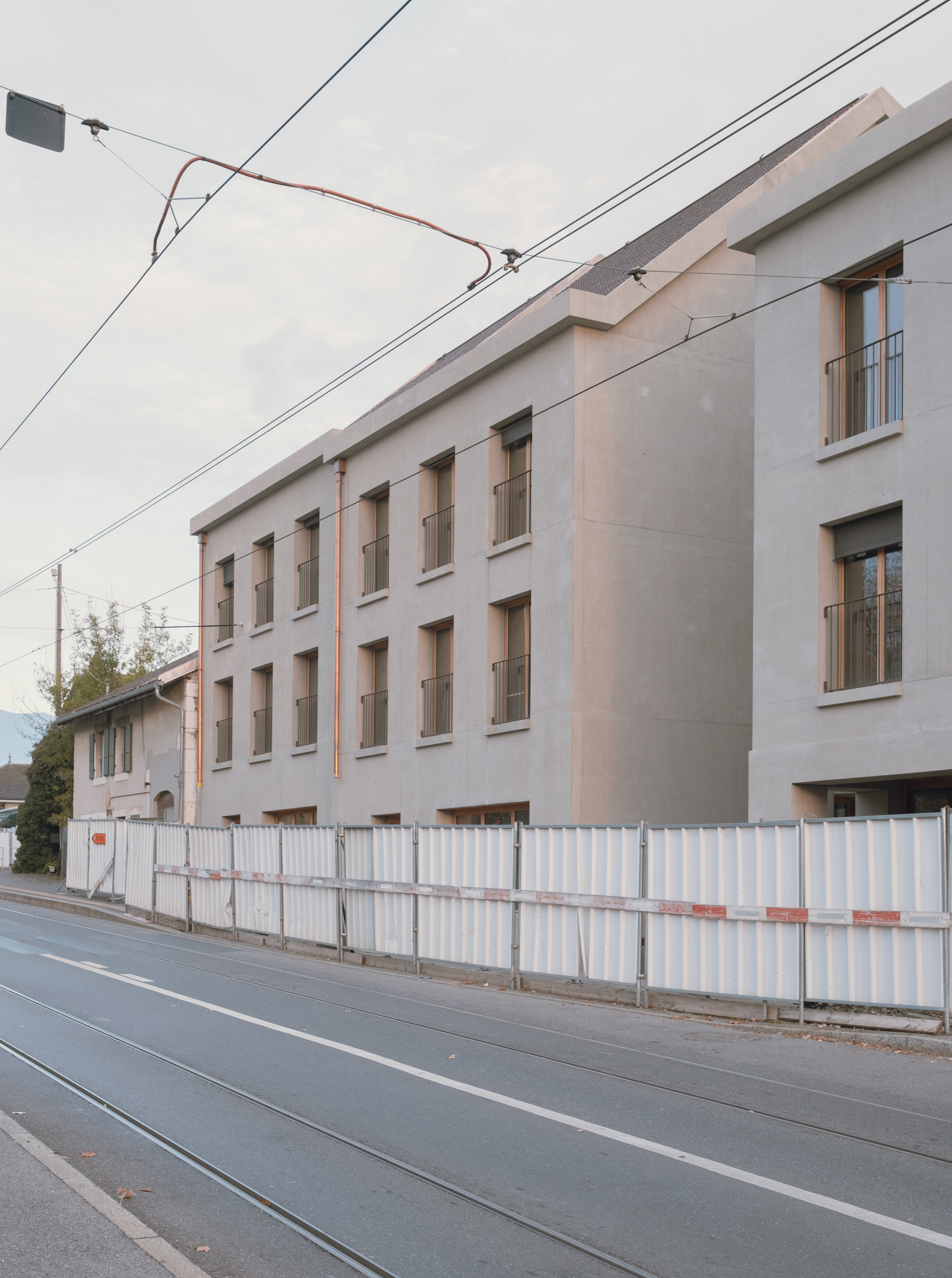 Il s’agissait de réaliser un bâtiment destiné à accueillir des logements, au cœur de ce qu’il reste du vieux village de Meyrin. Le site s’inscrit dans un tissu villageois composé de petites maisons juxtaposées sur deux niveaux, avec des toitures en pente couvertes de tuiles en terre cuite, des murs en pierre recouverts d’un crépi, parfois ponctués d’embrasures en pierre, et des fenêtres en bois. Le terrain se situe entre la route de Meyrin 280, très fréquentée, et une cour d'école qui s’ouvre aussi sur celle-ci.ll est également bordé par un mur pignon en pisé et par un parc. L’entrée n'était pas clairement définie et le site présentait un dénivelé important. Le projet devait absorber toutes ces particularités : le bâtiment devait être le résultat de ce qui était déjà présent sur le lieu, comme si le bâtiment avait toujours été là.