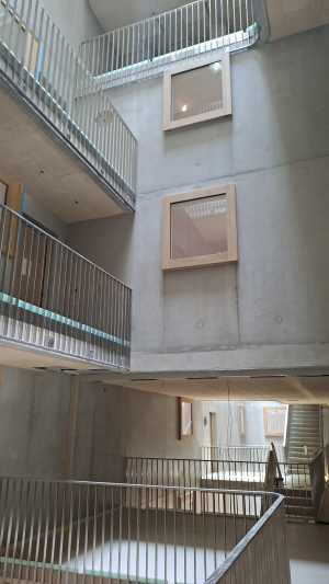 Partant de la grande forme urbaine et de l’îlot imposé par le plan de quartier avec ses couronnes de grande profondeur, le projet est développé en créant une échelle intermédiaire avec des cours intérieures ou des coursives distribuant les appartements. Ces espaces généreux forment un seuil offrant une transition entre la ville et l’espace privé des logements. On y trouve aussi les locaux communs pour les habitants (des salles communes, des chambres d’amis, des ateliers, des buanderies, …). Les dimensions des cours intérieures sont similaires aux ruelles de la vieille ville de Genève. On y retrouve des façades intérieures, des places ou des coursives favorisant le vivre ensemble des habitants de l’immeuble gardant toujours un rapport privilégié avec la lumière naturelle. La vie des cours se prolonge jusqu’en toiture où des espaces extérieurs sont proposés pour chaque collectivité d’habitants. Des potagers partagés, des espaces de pique-nique extérieurs et des bacs à arbres sont aménagés.